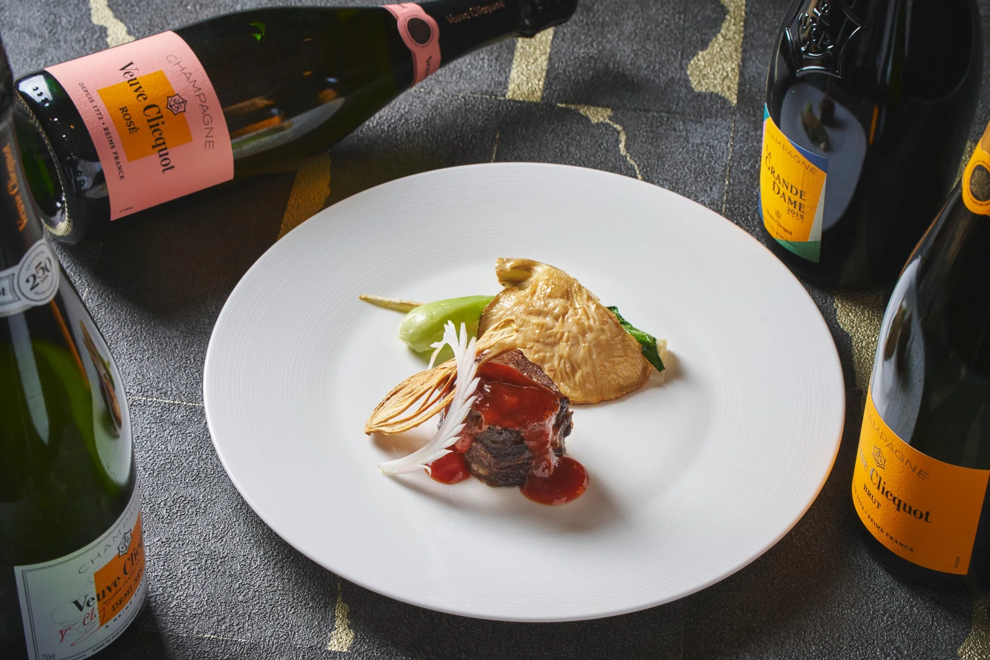 肉料理:国産牛頬肉の煮込み ヴーヴ・クリコ ローズラベルで濃厚に仕立てた一皿