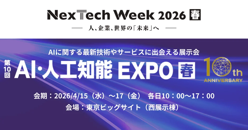 国内最大級のAIポータルメディア「AIsmiley」を運営するアイスマイリーは、2026年4月15日(水)から17日(金)までの3日間、東京ビッグサイトで開催される「NexTech Week 2026【春】/ AI・人工知能EXPO」にブースを出展します。