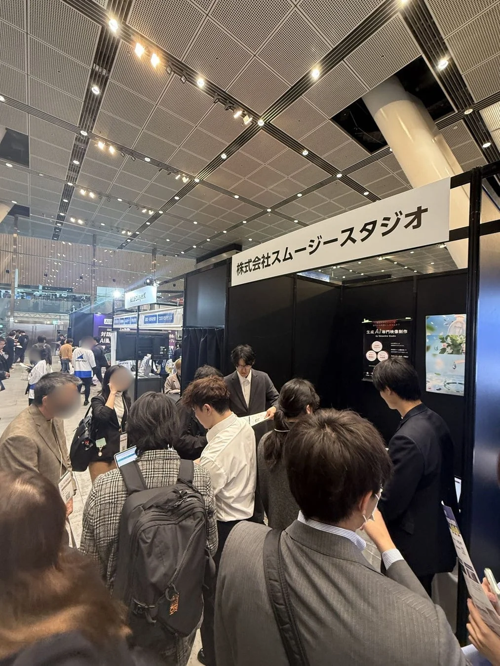 ブースでは、スムージースタジオが手掛ける生成AI専門映像制作について、具体的な展示を通じて紹介されました。生成AIを活用した映像表現の事例が示され、短納期かつ高品質なアウトプットを実現するための考え方が掲示されました。また、来場者に向けて実際の制作イメージや活用シーンが分かりやすく伝えられました。