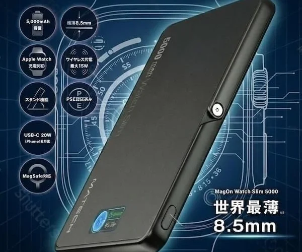 Apple Watchとスマホをこれ1台で充電!MATECHから厚さ8.5mmの超スリムモバイルバッテリー「MagOn Watch Slim 5000」アップグレード版が登場
