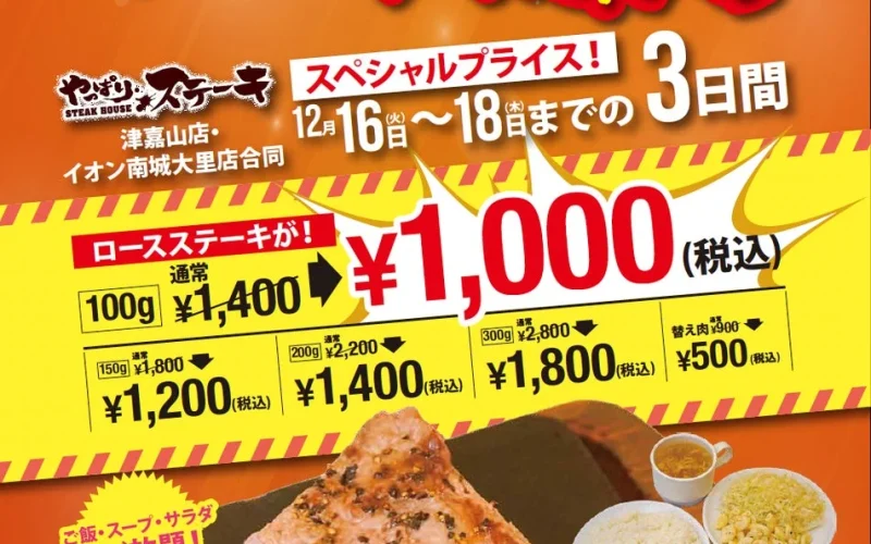 やっぱりステーキ9th津嘉山店が6周年!イオンタウン南城大里店と合同で3日間限定「ロース祭」開催
