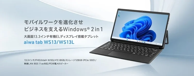 aiwaから法人向け大画面2-in-1タブレット「aiwa tab WS13/WS13L」が新登場!ビジネスを強力にサポート