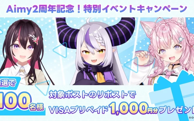 自分だけのAIパートナー作成アプリ『Aimy』が2周年!ホロライブVTuber「ラプラス・ダークネス」「AZKi」「博衣こより」との特別キャンペーンが開催
