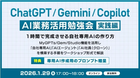 株式会社クロス・オペレーショングループ(XOP)は、2026年1月29日(木)にAI業務活用勉強会【実践編】をオンラインで開催します。BizOps専門カンパニーとして、先端技術と業務(Ops)の融合に強みを持つXOPが、生成AIを活用した業務改善支援の一環として企画しました。