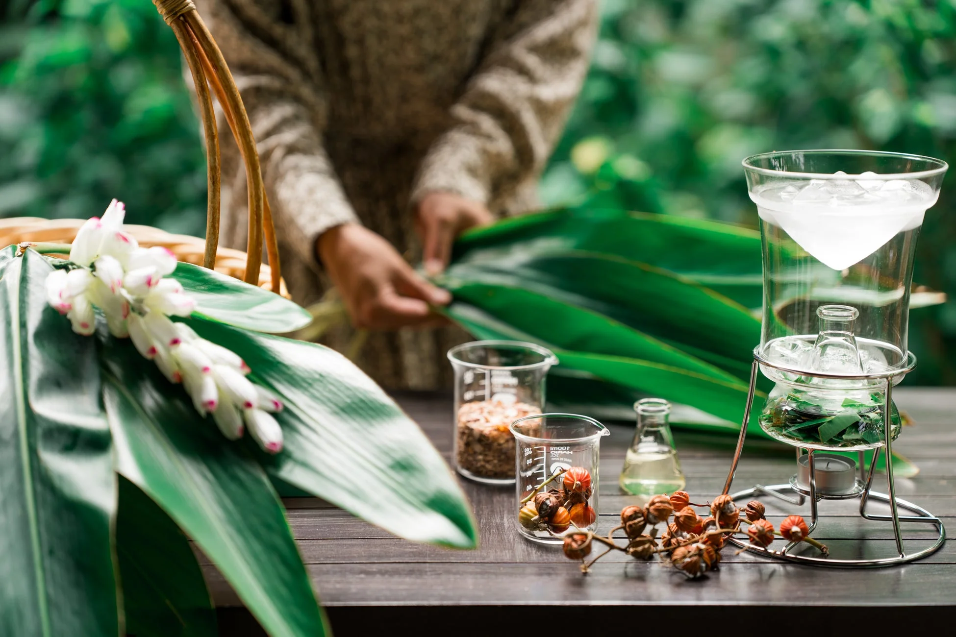 月桃は、虫よけとして家に植えられたり、防虫剤代わりにタンスに入れたりと、昔から西表島の暮らしの中で活用されてきました。本プランでは、月桃農園を訪れ、葉や花の収穫を体験し、摘みたての月桃を使ってボタニカルウォーターを作ります。完成したボタニカルウォーターは、虫よけやお部屋のアロマミストとして滞在中に使用でき、いつでも月桃の香りを楽しめます。
