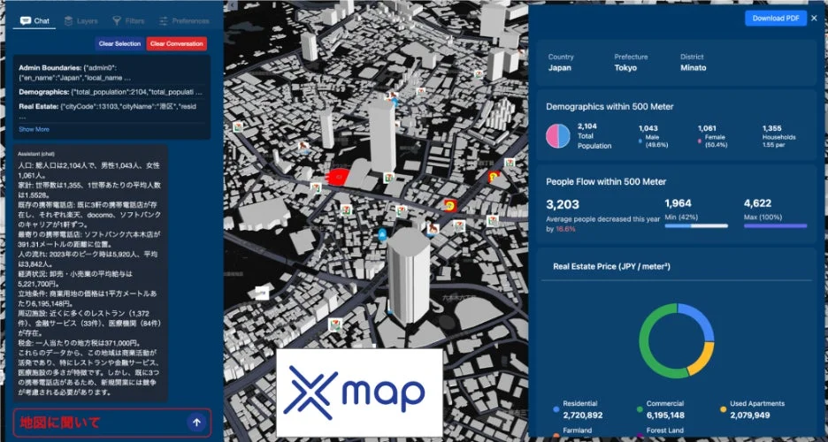 xMapは2023年12月に設立されたスタートアップ企業で、ロケーション・インテリジェンス分野に特化した生成AIソリューションを提供しています。企業や政府機関が現実世界での意思決定を迅速かつ的確に行えるようサポートしており、東京大学、ウーブン・バイ・トヨタ、メルカリといった組織出身のメンバーによって、最先端の学術研究と大規模商用プロダクト開発の知見が融合されています。