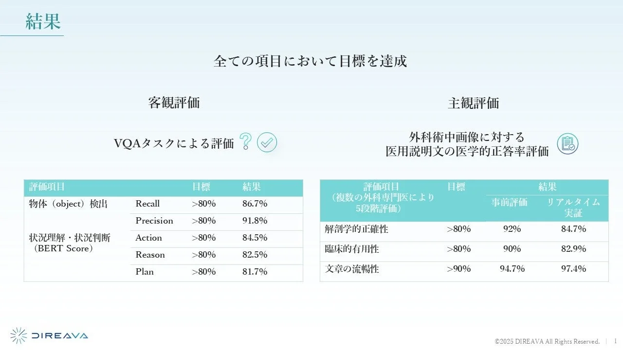 Direavaは、「Surgical VLM」の事業化に向けて研究開発と実証を継続し、2026年中のサービス提供開始を目指しています。今後は、対応可能な症例の拡大やシステム操作性の向上に向けた追加の実証実験も進められます。